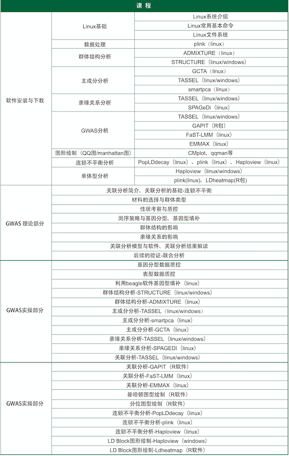 3、群體類課程:GWAS+遺傳進(jìn)化課程+重測序分析課程(可組合:零基礎(chǔ)R語言繪圖+生信入門+比較基因組+基因家族分析課程)